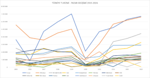 2015–2024 dönemi, Türkiye’ye gelen yabancı ziyaretçi sayılarında önemli dalgalanmaların yaşandığı, özellikle güvenlik olayları, diplomatik ilişkiler, pandemi ve bölgesel savaşların etkisinin belirgin olduğu bir zaman dilimi…